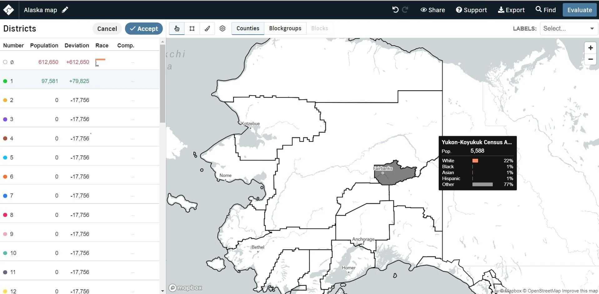 Redistricting is the constitutionally chartered process through which Alaska’s legislative district boundaries are redrawn in accordance with population changes reported by the U.S. Census. Every 10 years, when the census data is released to the public a ninety-day cycle is triggered wherein the state’s Redistricting Board must draft new maps, take public input, and adopt a finalized redistricting plan.
